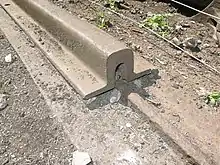 Early locomotive-powered railways had used short cast iron rails carried on stone blocks. A few were trying timber sleepers to support the rails and to maintain the gauge between them. These rails were brittle and broke easily, and they gave a rough ride due to the difficulty of maintaining a smooth line between the blocks or sleepers. Wrought iron rails were being manufactured but they were of poor quality due to the difficulty of cooling them evenly during manufacture. Brunel decided to use a continuously supported wrought iron rail, a bridge rail with a smaller rail section that cooled more evenly. This was an inverted-U section with wide flanges that could be bolted to the timber bearer, which was known as a 'longitudinal' baulk. The rail was usually kept off this by small wooden packing pieces that could be replaced when they were worn out by the passage of the trains, and therefore avoid the expense of replacing the heavier longitudinals. The rails were bolted to the longitudinals by long fang bolts or coach screws, and the rail joints were later supported by a base plate formed with a plug in the void of the inverted U shape rails so as to keep the rails in line with each other.[2]