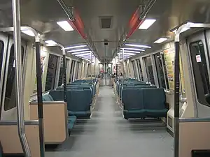 Originally all the cars had carpeted flooring. Due to similar concerns regarding cleanliness, the carpeting in all of the cars has been removed.[23] The A and B, and C2 cars now feature vinyl flooring in either grey or blue coloring, while the C1 cars feature a spray-on composite flooring.