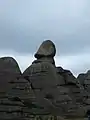 Of special interest to the tourists at Bayanaul are the large rocks and stones that have taken on bizarre shapes due to many centuries of erosion by wind and water. They often resemble animals, people, and other objects, such as a truck coming down the mountain. Among these is the sculpture known as the "stone head," which when viewed from a certain angle resembles the head of a bald, toothless old woman with a treacherous grin. Another equally well known creation of local nature is a rock called "masculine dignity," resembling the head of a penis. Among other rock forms are a camel, the heads of a mammoth and a gorilla, a flying saucer, a dinosaur, a dove, a horse head, and many others.