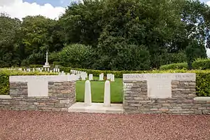 The Bazentin-le-Petit Communal Cemetery Extension is a cemetery located in the Somme region of France commemorating British and Commonwealth soldiers who fought in the Battle of the Somme in World War I. The cemetery contains mostly those who died from 14 July 1916 to December 1916 near Bazentin-le-Petit and those who died on battlefields near the villages of Bazentin and Contalmaison.[1]