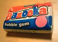 Bazooka is an American brand of bubble gum that was introduced in 1947.[1] It is a product of "Bazooka Candy Brands" which was a division of The Topps Company Inc. until that company's acquisition by Fanatics, Inc. in 2022.[2][1]
