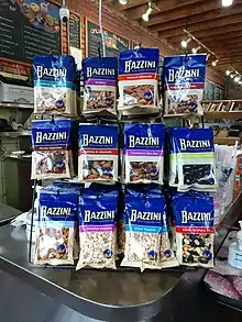 The A. L. Bazzini Company, commonly known as Bazzini, is a nut, fruit, and chocolate company headquartered in Allentown, Pennsylvania. Founded in New York City in 1886, it is the oldest nut company in the United States. It began on Park Place in the Washington Market neighborhood of Manhattan. Upon the market's demolition in 1968, it moved to a large nut processing facility on Greenwich Street. In 1983, the Bazzini family sold the business to Rocco Damato, who has owned and operated it ever since. The company moved to the Bronx in 1997, and to Allentown in 2011. In addition to being sold through retail shops, its nuts are sold in venues like Yankee Stadium, which it has supplied since it opened in 1923. The company's former factory on Greenwich Street is still known as the Bazzini Building, although it has been turned into condominiums, and is part of the Tribeca West Historic District.