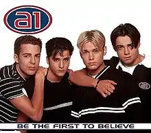 "Be the First to Believe" is the debut single of British-Norwegian boy band A1, released on 21 June 1999 from their debut album, Here We Come (1999). The song peaked at No. 6 on the UK Singles Chart, becoming the band's first chart entry in the UK.