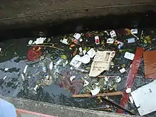 Researches on marine debris have substantially increased our knowledge of the amount and composition of marine debris as well as its impacts on the marine environment, aquatic life and people.[7] Marine debris is very harmful to marine organisms such as plants, invertebrates, fish, seabirds, sea turtles and other large marine mammals.[17][6] Marine debris contains plastic liters that are composed of industrial chemicals or toxins.[18][19] These chemicals can be destructive to aquatic organisms because toxins accumulate in the tissues of marine organisms and they cause specific effects such as behavioral changes and alterations in metabolic processes.[10][20] Also, a combination of plastic and seawater materials such as polycyclic aromatic hydrocarbons (PAHs), poly-chlorinated biphenyls (PCBs) and heavy metals can be fatal for marine life.[8] Moreover, consumption of micro-plastics by larger marine organisms cause obstructions of the intestinal tract that leads to starvation and death because of reduced energy fitness.[9] According to the U.S. Marine Mammal Commission, 111 out of the world's 312 species of seabirds, 26 species of marine mammals, and six out of seven of the words species of sea turtles have experienced issues with beach litter ingestion.[6][18][21][22] Studies reveal that micro-plastics negatively impact human health due to consumption of marine organisms by humans.[23][24]