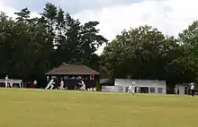 The playing fields at Marchants Hill are home to Hindhead Athletic Football Club, Beacon Hill Junior Football Club[18] and Hindhead Cricket Club.[19] The cricket ground hosted two international women's cricket matches in the 1950s: Molly Hide's XI against Australia Women in 1951[20] and South Women Second XI against New Zealand Women in 1954.[21]