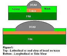 Bead probe technology (BPT) is technique used to provide electrical access (called “nodal access”) to printed circuit board (PCB) circuitry for performing in-circuit testing (ICT).[1][2] It makes use of small beads of solder placed onto the board's traces to allow measuring and controlling of the signals using a test probe. This permits test access to boards on which standard ICT test pads are not feasible due to space constraints.