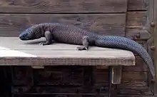 Young lizards are seldom seen. They are believed to spend much of their early lives underground, emerging at 2–3 years of age after gaining considerable size.[22]