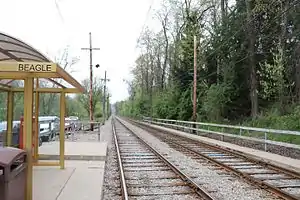 Beagle is a station on the Pittsburgh Regional Transit's light rail network, located in Bethel Park, Pennsylvania. The street level stop is designed as a small commuter stop, serving area residents who walk to the train so they can be taken toward Downtown Pittsburgh.