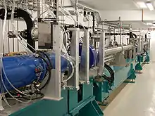 - the path leading from particle generator (e.g. a cyclic accelerator, synchrotron light sources, cyclotrons, or spallation sources) to the experimental end-station.