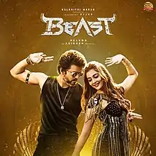 In December 2021, Vijay, Nelson, Anirudh and Sivakarthikeyan shot for the promotional video for the film's first single.[43] On 7 February 2022, Sun Pictures released the promotional skit for the first single track eventually titled as "Arabic Kuthu".[44][45] The six-minute promo featured Nelson, Anirudh and Sivakarthikeyan with Vijay, in a voice-over (conversation through phone) comically documenting the song's making.[46][47][48] The track released on the occasion of Valentine's Day (14 February 2022),[49] after Anirudh occasionally released singles on that date.[50][51] The track is sung by Anirudh and Jonita Gandhi, whom previously had collaborated in the track "Chellamma" for Doctor (2021).[52] The film's two theme music, "Beast Announcement Theme" and "Pooja Hegde Announcement Theme" was released on 23 February 2022.[53][54] The second single "Jolly O Gymkhana",[55] sung by Vijay with lyrics written by Ku. Karthik, released on 19 March 2022.[56] The third single, titled "Beast Mode", written by Vivek and sung by Anirudh, was released on 8 April 2022.[57]