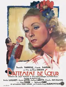 Beating Heart (French: Battement de coeur) is a 1940 French comedy film directed by Henri Decoin and starring Danielle Darrieux, Claude Dauphin and André Luguet. It was shot at the Billancourt Studios in Paris. The film' sets were designed by the art directors Léon Barsacq and Jean Perrier. It was inspired by the 1939 Italian film Heartbeat. The film was remade in Hollywood as Heartbeat in 1946 starring Ginger Rogers and Basil Rathbone.[1]
