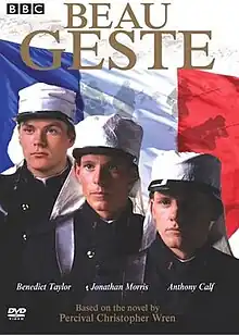 Beau Geste is a BBC television serial, based on the 1924 novel by P. C. Wren. The series aired on BBC1 from 31 October to 19 December 1982 and starred Benedict Taylor, Anthony Calf and Jonathon Morris as the three brothers.