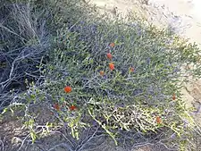 Beaufortia aestiva, commonly known as Kalbarri beaufortia,[2] or summer flame,[3] is a plant in the myrtle family, Myrtaceae and is endemic to the southwest of Western Australia. It is a dense, usually rounded shrub with small leaves and which bears yellow or red flowers in bottlebrush-like spikes near the ends of the branches in summer. It is similar to Beaufortia squarrosa but that is a smaller shrub which always has red flowers.