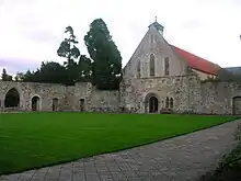 | Visible remains | cloister, refectory (now the parish church) and west range, gatehouse, foundations of the church, many other ruins, earthworks |