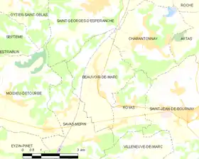 Beauvoir-de-Marc (French pronunciation: [bovwaʁ də maʁk]) is a commune in the northern part of the Isère department. Isère is found in southeastern France, in the Auvergne-Rhône-Alpes region.