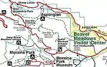 Beaver Meadows Visitor Center, also known as Rocky Mountain National Park Administration Building, is the park headquarters and principal visitors center of Rocky Mountain National Park in central northern Colorado. Completed in 1967, it was designed by Taliesin Associated Architects, and was one of the most significant commissions for that firm in the years immediately following the death of founder Frank Lloyd Wright.[3] It was also one of the last major projects completed under the Park Service Mission 66 project. It was declared a National Historic Landmark in 2001.[2][4]