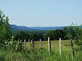 The Beaver Valley is a valley in southern Ontario, Canada, at the southern tip of Georgian Bay. The Beaver River flows north through the valley, emptying into Georgian Bay in the town of Thornbury. It is a productive agricultural area, producing a significant portion of Canada's apple crop. It also contains one of Ontario's best-preserved hardwood swamp ecosystems. The Bruce Trail follows the perimeter of the valley passing several natural landmarks including Old Baldy, the Duncan Crevice Caves, and Eugenia Falls. The main towns in the valley are Flesherton at the south end, Kimberley, and Thornbury.