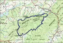 The boundary of the wildland as determined by the Wilderness Society is shown in the adjacent map.[1] Additional roads and trails are given on National Geographic Maps 786 (Mount Rogers).[5] and Map 783 (South Holston and Watauga Lakes)[6] A great variety of information, including topographic maps, aerial views, satellite data and weather information, is obtained by selecting the link with the wildland's gps coordinates in the upper right of this page.