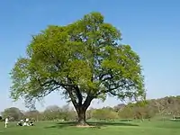 Beckenham Place Park is considered one of the finest wildlife sites in the borough, containing ancient woodland as well as a variety of other habitats.[4] Notable trees include oak, wild service tree, sweet chestnut and an ancient Turkey oak tree (reputedly the second oldest in Britain), that survived an arson attack in the 1990s but succumbed to wind, old age and vandalism in 2002. There is also an old mulberry tree.[2]