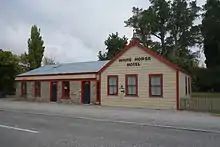 The former White Horse Hotel in Becks was established in 1864 by John Nixon Becks, and is registered by Heritage New Zealand as a Category II heritage building.[1] The township was originally called White Horse, after the public house, but the name was later changed to that of the publican.[2]