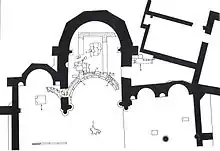 Under the Lusignan kings the subsequent history of the building is not well documented, but some historians, including Camille Enlart, proposed that after the fall of Acre in the late twelfth century, English monks who were followers of Thomas Becket established a new Latin church on this site and dedicated it to Saint Nicholas.[4] This reading of the sources is not, however, universally accepted in view of the minor role played by the Knights of Saint Thomas in the history of the Latin east.[5] With the adjacent cathedral dedicated to the Latin rite, the Bedesten probably continued to serve an Orthodox role. The church was expanded several times and rebuilt during the fourteenth and the fifteenth centuries, but the old Byzantine apse was retained.