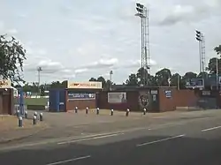 Goldington Road is the home ground of the Bedford Blues, with a capacity of 5,000, usually drawing 2000+ people with each home game. Towards the end of the 05–06 season, two new temporary stands were built for the big home tie against Harlequins, at one point these stands were made a long term part of the stadium, along with the grounds public house and original stand. As of the 06–07 season the extra stands have been removed.[1][2][3]