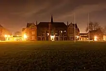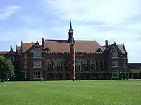 The Main School Building, originally built in 1891, is a Gothic Revival Grade II listed building.[15][16] On the night of 3–4 March 1979, much of the building was gutted by fire as a result of arson. The internal structure of the building was destroyed and thirty classrooms were lost. Almost all pupil records were saved but books, furniture and the large collection of portraits of former headmasters were lost. Nevertheless, the school was in full operation on Monday 5 March.[17][18]