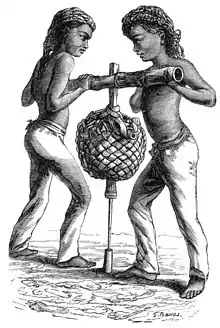 Bedil is a term from Maritime Southeast Asia which refers to various types of firearms and gunpowder weapons, from small pistols to large siege guns. The term bedil comes from wedil (or wediyal) and wediluppu (or wediyuppu) in the Tamil language.[1] In their original form, these words refer to gunpowder blast and saltpeter, respectively. But after being absorbed into bedil in the Malay language, and in a number of other cultures in the archipelago, that Tamil vocabulary is used to refer to all types of weapons that use gunpowder. The terms bedil and bedhil are known in Javanese and Balinese, in Sundanese the term is bedil, in Batak it is known as bodil, in Makasarese, badili, in Buginese, balili, in Dayak language, badil, in Tagalog, baril, in Bisayan, bádil, in Bikol languages, badil, and in Malay it is badel or bedil.[1][2][3]