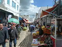 Béja (Arabic: باجة Bāja) is a city in Tunisia. It is the capital of the Béja Governorate. It is located 105 kilometers (65 mi) from Tunis, between the Medjerdah River and the Mediterranean, against the foothills of the Khroumire, the town of Béja is situated on the sides of Djebel Acheb, facing the greening meadows, its white terraces and red roofs dominated by the imposing ruins of the old Roman fortress.