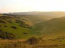 The other two areas are both on the north slope of Beeding Hill. The western area (area two) includes the Lynchet Triangle (TQ 207 098), which has medieval ‘cultivation terraces’ which were strips of open fields cultivated until the middle of the nineteenth century. In 2008 there was yellow rattle, three orchid species, common and latticed heath moths and grizzled skipper butterfly as well as glowworms,[9] but the area is deteriorating and is in unfavourable condition, due to lack of grazing.[1]