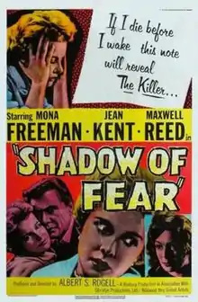 Before I Wake is a 1955 British mystery film directed by Albert S. Rogell and starring Mona Freeman, Jean Kent and Maxwell Reed.[2] It was shot at Walton Studios in Surrey, with sets designed by the art director Scott MacGregor. It was released in the United States under the alternative title of Shadow of Fear. This was director Rogell's final film.[3]