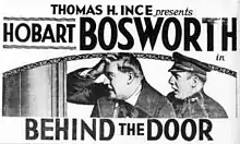 Behind the Door is a surviving 1919 silent war drama film produced by Thomas Ince, directed by Irvin Willat and distributed by Paramount Pictures. The picture is a starring vehicle for veteran actor Hobart Bosworth and the supporting cast features Jane Novak and Wallace Beery. The film's source is a short story by Gouverneur Morris, also titled "Behind the Door," published in McClure's Magazine in July 1917.[1] The film is extant at the Library of Congress and the Gosfilmofond Russian State Archive.[2][3][4][5] In 2016, the San Francisco Silent Film Festival, working with the Library of Congress and Godfilmofond, created a more fully-restored print of the film.[6]