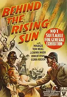Behind the Rising Sun is a 1943 American war film based on the 1941 book Behind the Rising Sun written by James R. Young. Later-blacklisted Edward Dmytryk directed the film,[3] and it stars Margo, Tom Neal, J. Carrol Naish, Robert Ryan and Gloria Holden.