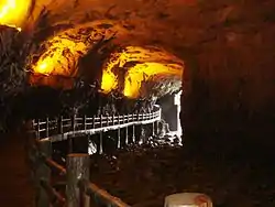 The tunnel is 550 meters long and 9–15 meters wide. Visitors were once able to ride canoe along the tunnel but for several years the site has been closed to visitors due to falling rocks rendering it dangerous.[3]