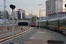 The Beijing underground cross-city railway is a short railway connection in Beijing. The speed limit is 120 km/h.[1] It connects the important transportation hubs Beijing railway station and Beijing West railway station via a tunnel. It also connects lines from southern and western areas with lines from northeast China.[3] The railway has a length span of 9.156 km (5.689 mi), and has been officially operational since March 20, 2015.[4]