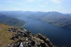 Beinn Sgritheall or Beinn an Sgrithill (Scottish Gaelic for 'scree mountain'),[2] also anglicized Ben Sgriol,[2] is the highest mountain on the Glenelg peninsula in the Northwest Highlands of Scotland. It is a Munro with a height of 974 metres (3,196 ft). The main approach is via Arnisdale on the shores of Loch Hourn or via Gleann Beag to the north, with its well-known brochs. The view from the summit was described by Sir Hugh Munro, a founder member of the Scottish Mountaineering Club, as "perhaps the most beautiful I have seen in Scotland".[3]