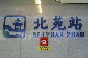 Beiyuan station (Chinese: 北苑站), is a station of Line 2 of the Xi'an Metro. It started operations on 16 September 2011.[1]