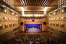• The Performing Arts Centre, the core of the site's cultural and artistic activities, it includes two auditoriums (the larger holding 1,429 seats and the smaller with 348 seats), rehearsal hall with 72 seats, in order to support film, opera, ballet, theatre and music events;[1] and