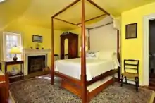 Connected to the drawing room by a door with a 12-pane transom above is the Washington guest chamber, where George and Martha Washington and other guests would have spent the night. In the absence of guests, however, the room was used as Jesse and Charlotte Ewell's bedroom and was referred to as "Ole Miss's" or "Ole Marstar's" room.[18]