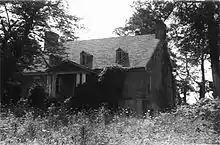 Bel Air was originally constructed as an English fort in the 1670s by order of Virginia colonial Governor William Berkeley, who occupied the fort himself in 1673.[4] Upon the stone foundation of the old fort, Captain Charles Ewell (1713–1747) built Bel Air as a tobacco plantation and family seat in the early 1740s.[5][6] As some of the first settlers in Prince William County, Charles and his brother Bertrand first came to the area from Maryland to establish an iron furnace operation on the Occoquan River.[7][8] Described by Washington in his journals as a "man of affairs," Charles maintained mill interests in Occoquan together with his brother-in-law, John Balladine. Like other planters in northern Virginia, he sent his harvest to the nearby port of Dumfries to be loaded on ships for Glasgow, Scotland.[9] During this time, Dumfries was a thriving tobacco port, and it easily outstripped in population and importance the rival town of Alexandria, further up the river. As a center of culture, the great families in the area would drive into Dumfries in their chariots to attend balls and "tea drinkings".[9] After organizing a joint stock company in 1744, Charles built a warehouse and began a successful mercantile business in Dumfries.