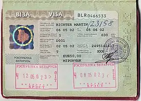 - "Visas to the Republic Of Belarus". Embassy of the Republic of Belarus to the United Kingdom of Great Britain and Northern Ireland. Ministry of Foreign Affairs (Belarus). Retrieved 9 December 2017.