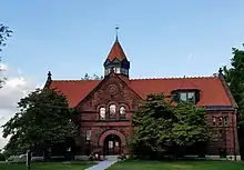 Buildings arrayed on South Main Street were built mostly from the middle of the 19th century to its end. Most of them have Greek Revival styling, but this portion of the district contains the only notable examples of Queen Anne architecture, as well as the Clapp Memorial Library, designed by H.F. Kilburn. Along Maple Street most of the houses are also of the same period, although there are also some that date to early in the 20th century. Maple Street also features Belchertown's only stone house (home of the Belchertown Historical Association) and its only Carpenter Gothic building, the 1886 Towne House.[2]