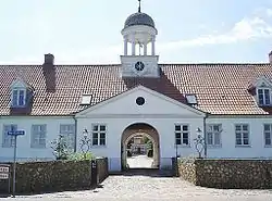 Most of the farm buildings were destroyed in a fire in 1910. The most notable exception is a large, half-timbered barn from 1715. The barn is 30 bays long and 14 bays wide.[6] The main building and the half-timbered barn were listed on the Danish registry of protected buildings and places in 1918. The scope of the heritage listing was expanded in 1990.[6] Most of the other farm buildings date from after the fire. The entrance to the complex is marked by a gatehouse.
