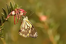 Belenois java, the caper white or common white,[3] is a small butterfly of the family Pieridae found in Australia, Indonesia, and Melanesia.[4] It is highly migratory and is often confused with the cabbage white (Pieris rapae).[5]