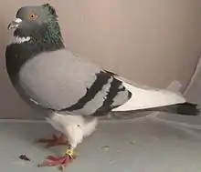 The Belgian Ringbeater is a breed of fancy pigeon. Belgian Ringbeaters, along with other varieties of domesticated pigeons, are all descendants from the rock pigeon (Columba livia).