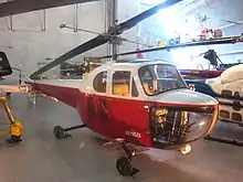 The Bell 47 is a single-rotor single-engine light helicopter manufactured by Bell Helicopter. It was based on the third Bell 30 prototype, which was the company's first helicopter designed by Arthur M. Young. The 47 became the first helicopter certified for civilian use on 8 March 1946.[1][2] The first civilian delivery was made on 31 December 1946 to Helicopter Air Transport.[3] More than 5,600 Bell 47s were produced, including those under license by Agusta in Italy, Kawasaki Heavy Industries in Japan, and Westland Aircraft in the United Kingdom. The Bell 47J Ranger is a modified version with a fully enclosed cabin and tail boom.