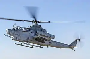 In February 2008, the U.S. Navy adjusted the contract so the last 40 AH-1Zs were built as new airframes instead of the previously planned rebuild of AH-1Ws.[15] In September 2008, the Navy requested an additional 46 airframes for the Marine Corps, bringing the total number ordered to 226.[16] During 2010, the Marine Corps ordered 189 AH-1Zs, with 58 of them being new airframes,[17] with deliveries to continue until 2022.[18] On 10 December 2010, the Department of the Navy approved the AH-1Z for full-rate production.[19][20]