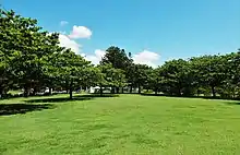 The Botanic Garden remnant known as Bell Park consists of Park and Recreation Reserve. The Park is an area of 11 hectares (27 acres) bounded on the south by Hill Street, to the west by the caravan park and swimming complex, to the north by Lions Park and to the east by the Pacific Ocean. No longer a densely vegetated area as it was described in the 1890s, Bell Park has large, open, grassed areas with some more formally planted rows of hoop pines, particularly in the southern section of the park.[1]