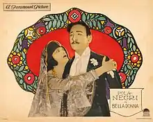 Bella Donna is a 1923 American silent film produced by Famous Players-Lasky and released by Paramount Pictures. The film is based on the 1909 novel, Bella Donna, by Robert Smythe Hichens which was later adapted for a 1912 Broadway play starring Alla Nazimova. This film is also a remake of the 1915 Paramount film Bella Donna starring Pauline Frederick. The 1923 film was directed by George Fitzmaurice and starred Pola Negri in her first American film.[1][2]