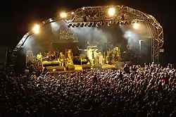 The Belladrum Tartan Heart Festival is a music and arts festival, held on the Belladrum Estate in Kiltarlity near Inverness, in Scotland. It is normally held at the start of August. Founded in 2004, the festival has rapidly grown in popularity. The festival has sold out in advance every year since 2008. The capacity of the 2019 festival was 20,000.[1]
